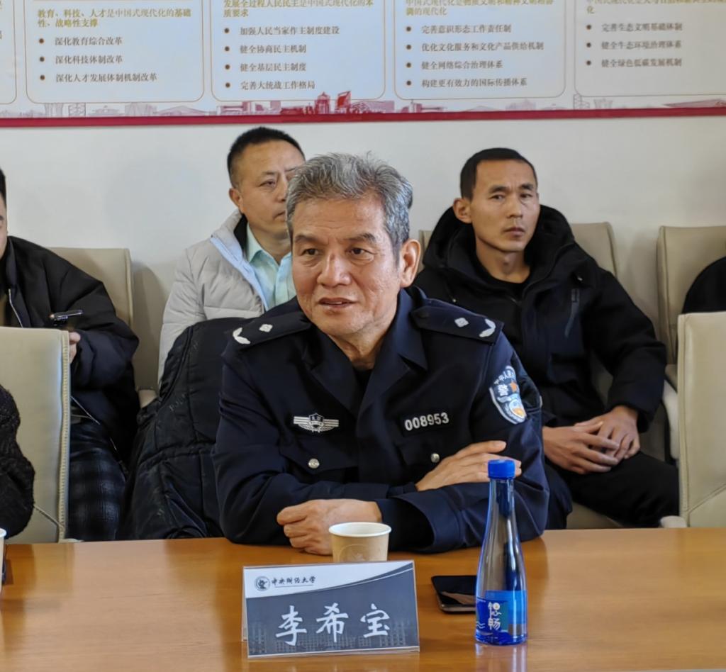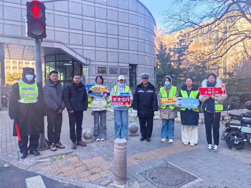 在校期间,李希宝警官现场指导学校交通志愿服务活动,与保卫处、后勤服务产业集团交通服务部以及学生志愿者代表合影。