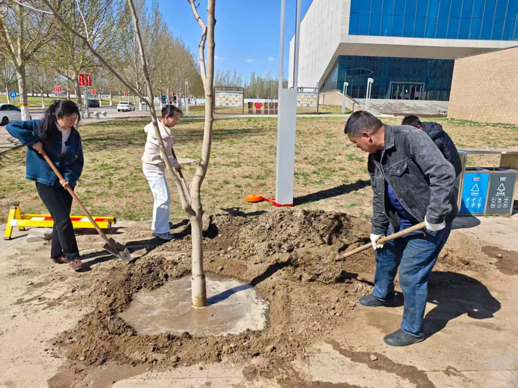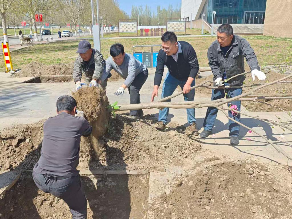 为深入学习贯彻习近平生态文明思想,落实习近平总书记在参加首都义务植树活动时的重要讲话精神,4月10日,后勤服务产业集团党委组织党员群众在沙河校区开展义务植树活动。