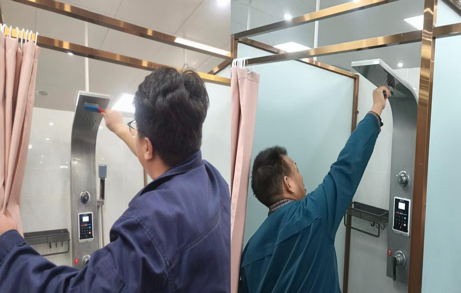 集团提前制定专项清洗检修方案,组织人员分组作业,围绕“除垢除菌、防漏增效”的目标,逐一对淋浴喷头进行拆卸、深度浸泡与彻底清洗,清除水垢结晶及管道沉积物,并使用酒精对喷头进行消毒处理。同时,开展淋浴设施检修,细致检查阀门密封性、管道连接处等关键部位,及时加固松动部件、更换老化密封件,有效防范跑冒滴漏问题。